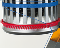 振動式張力裝置有一組磁性張力盤片來保持恒定的紗線預張力。持續轉動的張力碟有自潔功能。 它能預防非斷紗因素的停機。
